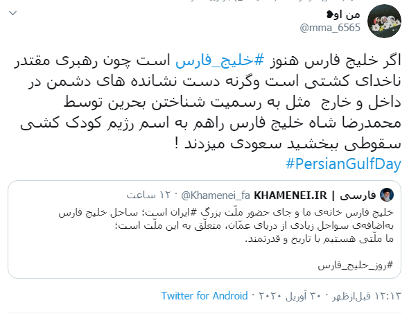 خلیج فارس، هنوز خلیج فارس است چون… فضای مجازی در پنجشنبه, 11, اردیبهشت ,1399 0 به اشتراک گذاری /.انتهای پیام